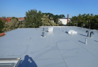 Flachdach mit einer Kunststoffabdichtung