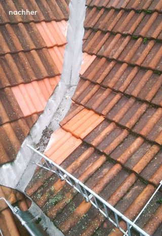 - an der Dachentwässerung (Rinnen und Fallrohre)